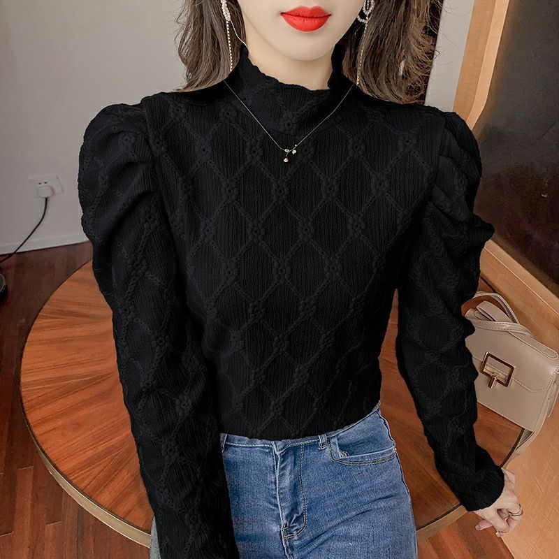 內搭打底衫女設計感小衆2024新款秋冬季洋氣小衫高領白色蕾絲上衣